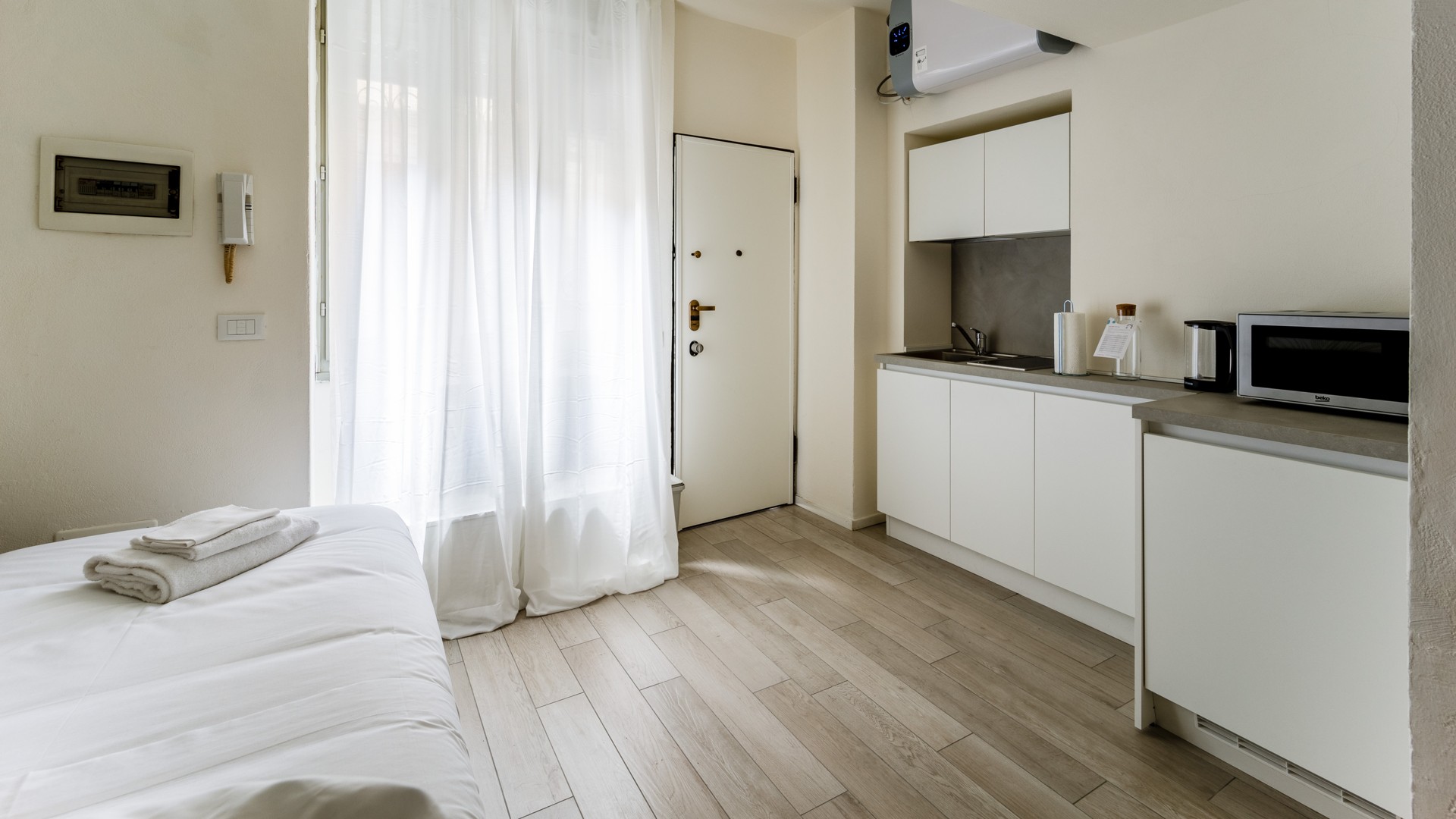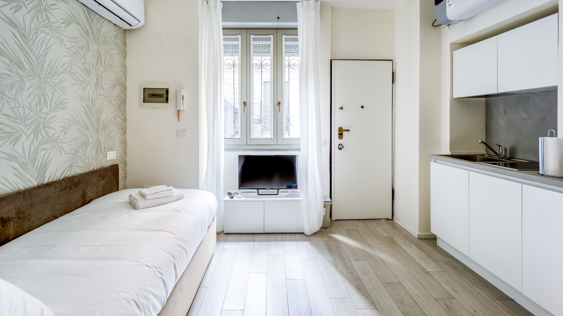 Completamente rinnovato nel 2021, con arredi su misura e finiture moderne, questo appartamento per una persona offre linea cortesia, asciugacapelli, toaster, wi-fi e aria condizionata. Riservato ai non fumatori.