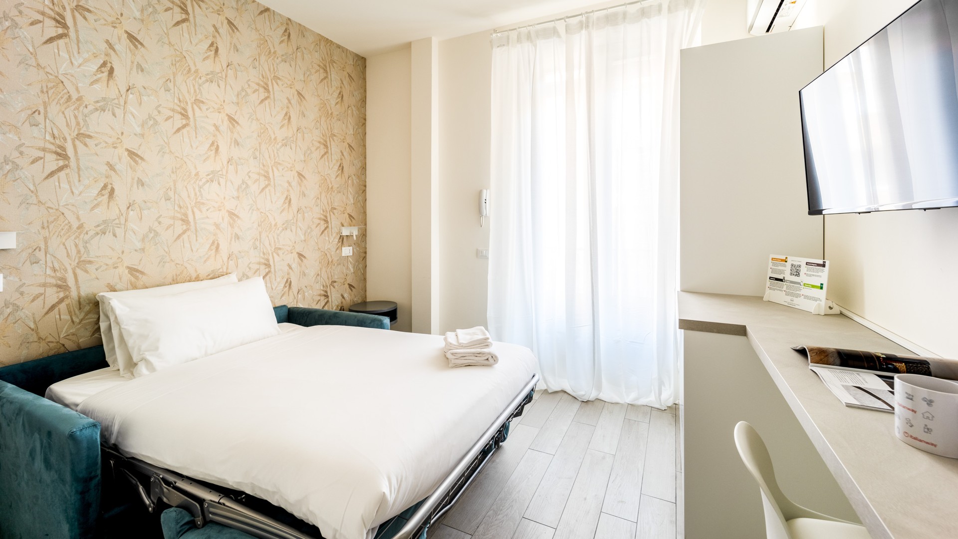 Completamente rinnovato nel 2021, con arredi su misura e finiture moderne, questo appartamento per una persona offre linea cortesia, asciugacapelli, toaster, wi-fi e aria condizionata. Comodamente raggiungibile in ascensore e riservato ai non fumatori.