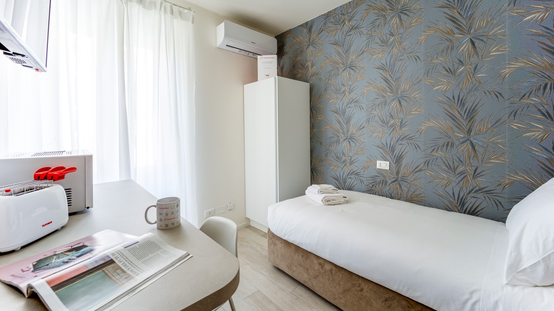 Completamente rinnovato nel 2021, con arredi su misura e finiture moderne, questo appartamento per una persona offre linea cortesia, asciugacapelli, toaster, wi-fi e aria condizionata. Comodamente raggiungibile in ascensore e riservato ai non fumatori.