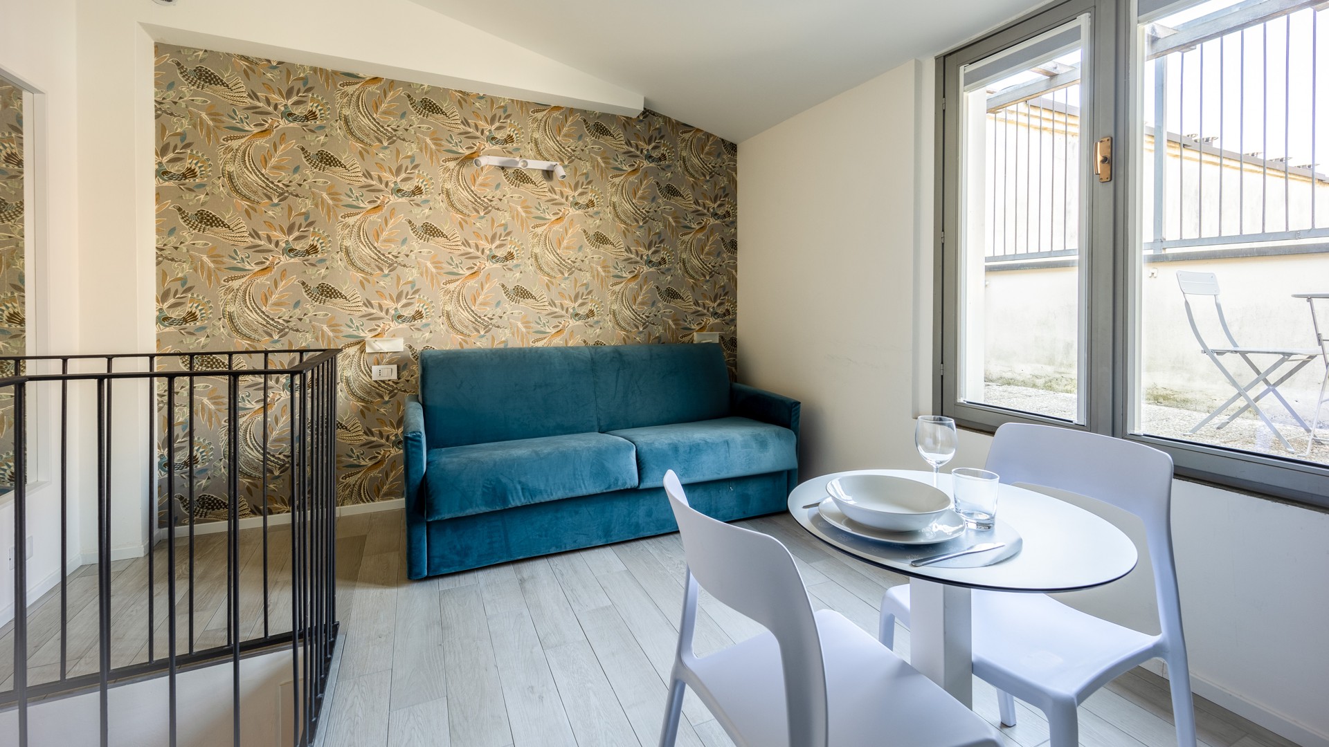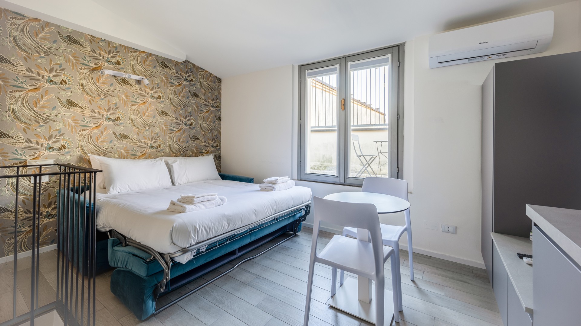 Completamente rinnovato nel 2021, con arredi su misura e finiture moderne, questo appartamento per due persone offre linea cortesia, asciugacapelli, toaster, wi-fi e aria condizionata. Comodamente raggiungibile in ascensore e riservato ai non fumatori.