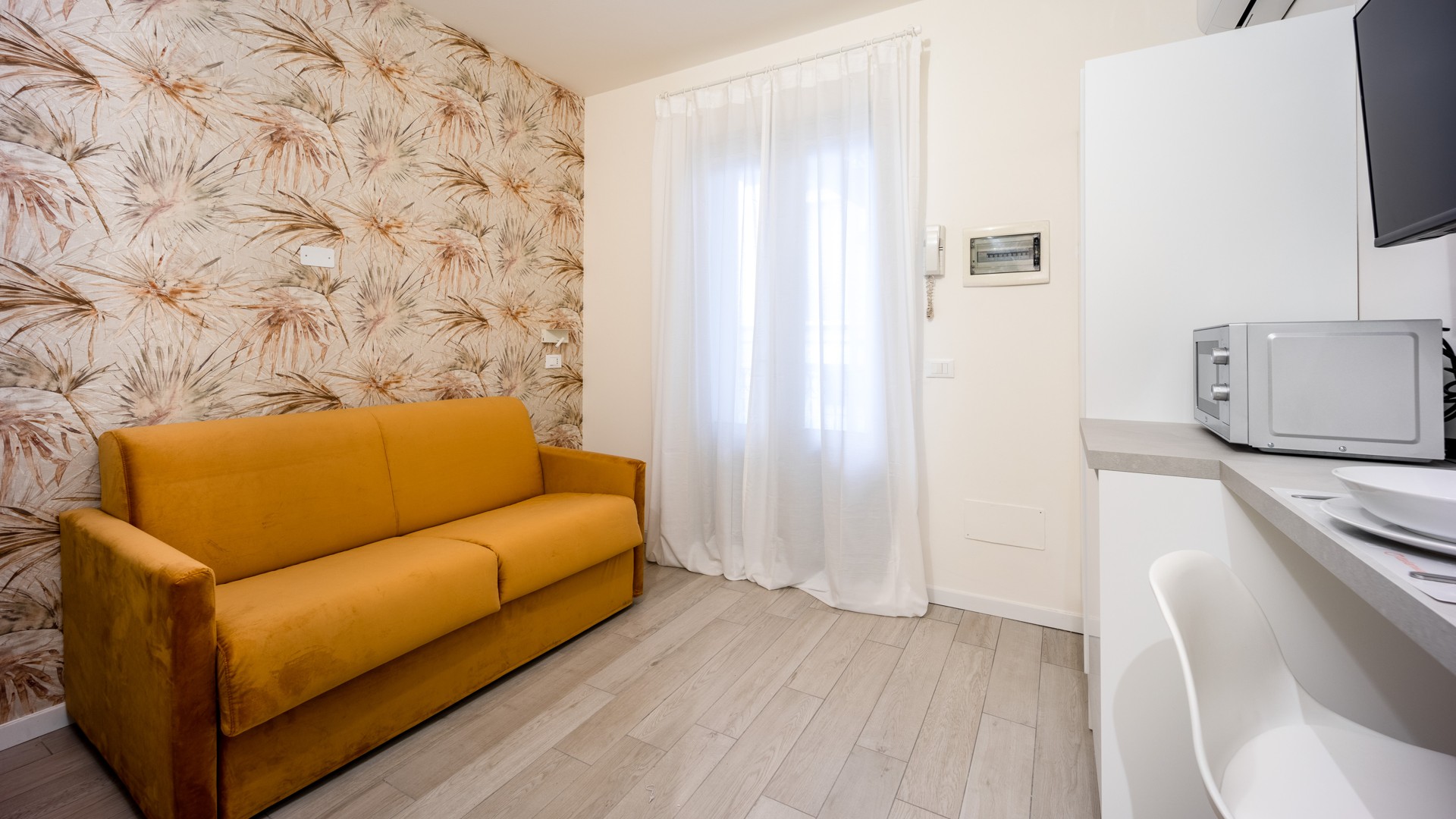 Completamente rinnovato nel 2021, con arredi su misura e finiture moderne, questo appartamento per una persona offre linea cortesia, asciugacapelli, toaster, wi-fi e aria condizionata. Posizionato sul piano ammezzato, si raggiunge attraverso una rampa di scale nel cortile, partendo dal primo piano dell’edificio. Riservato ai non fumatori.