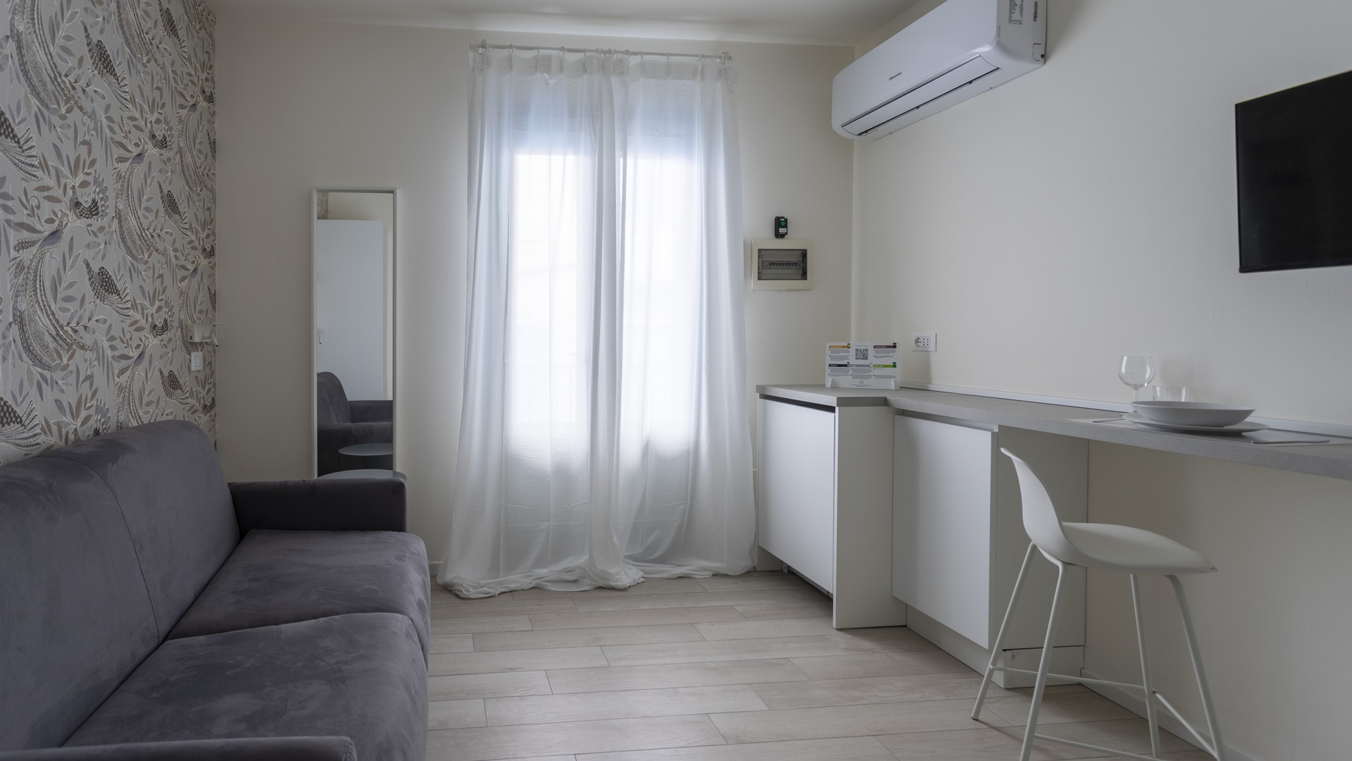 Completamente rinnovato nel 2021, con arredi su misura e finiture moderne, questo appartamento per una persona offre linea cortesia, asciugacapelli, toaster, wi-fi e aria condizionata. Posizionato sul piano ammezzato, si raggiunge attraverso una rampa di scale nel cortile, partendo dal secondo piano dell’edificio. Riservato ai non fumatori.