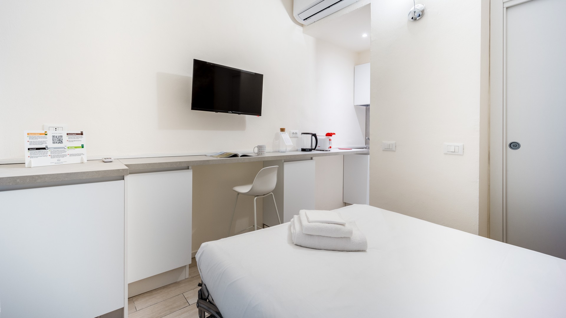 Completamente rinnovato nel 2021, con arredi su misura e finiture moderne, questo appartamento per una persona offre linea cortesia, asciugacapelli, toaster, wi-fi e aria condizionata. Comodamente raggiungibile in ascensore e riservato ai non fumatori.