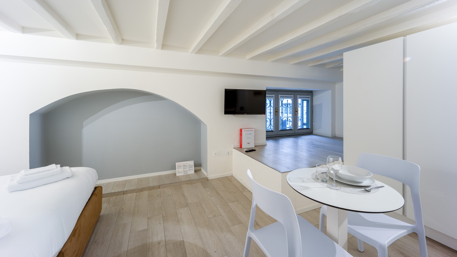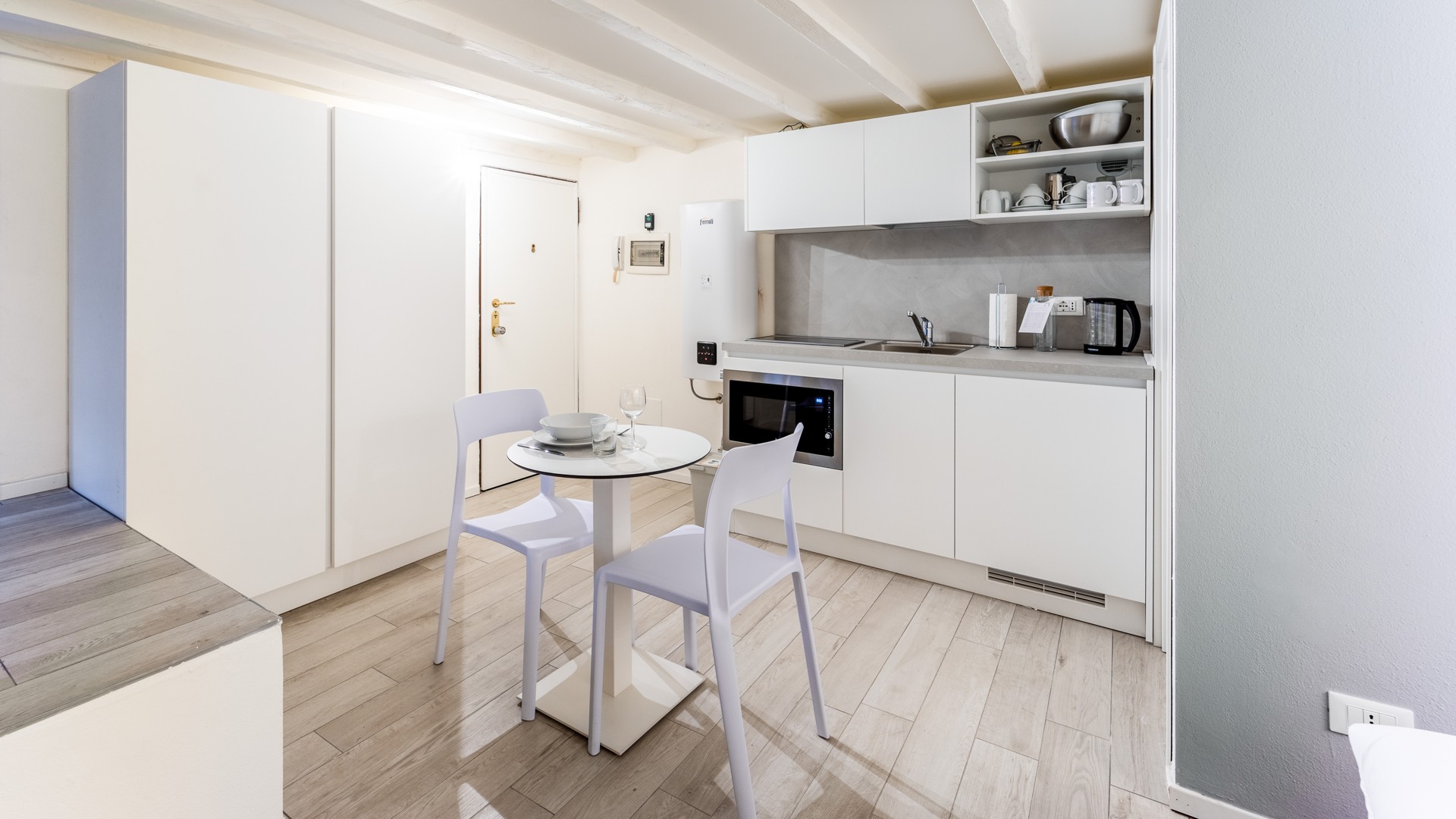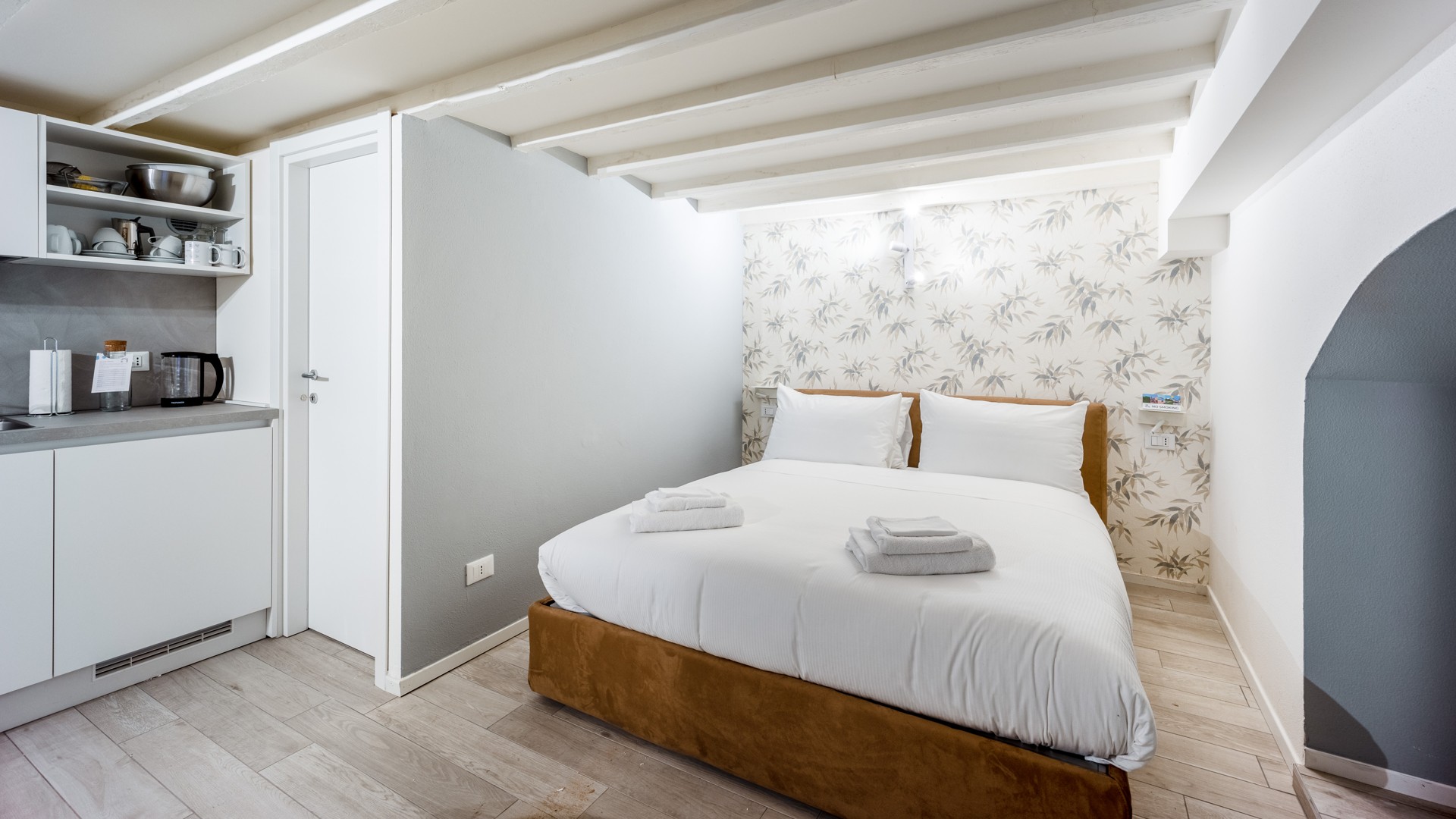 Completamente rinnovato nel 2021, con arredi su misura e finiture moderne, questo appartamento per due persone offre linea cortesia, asciugacapelli, toaster, wi-fi e aria condizionata. Posizionato sul piano ammezzato, si raggiunge attraverso una rampa di scale interna partendo dal primo piano dell’edificio. Riservato ai non fumatori.